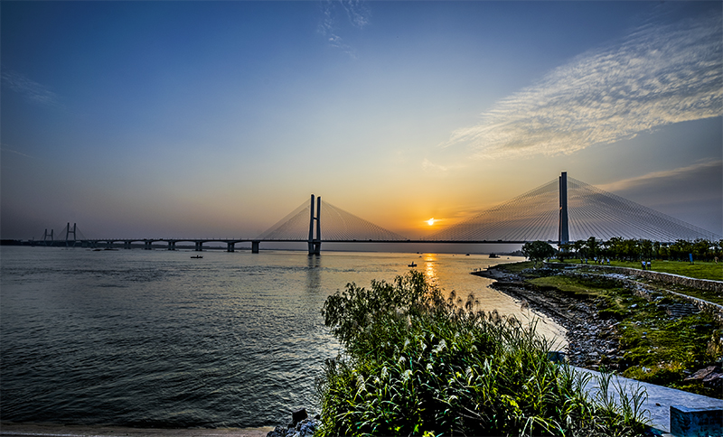 荊州長江公路大橋位于長江中游荊江河段,屬207國道跨長江的重要橋梁。大橋全長4177.6米,在同類橋梁中位列亞洲第一,世界第二。公司承建主橋(200 500 200)m雙塔雙索面漂浮體系預(yù)應(yīng)力砼斜拉橋和(93 150 93)m預(yù)應(yīng)力砼連續(xù)箱梁 22*20m預(yù)應(yīng)力砼空心板梁,H型主塔高139.15米,塔基礎(chǔ)為22根孔徑2.5米鉆孔群樁,主塔承臺(tái)直徑33米、高6.25米,砼方量達(dá)5346.6立方。大橋結(jié)構(gòu)復(fù)雜、施工難度大,全橋構(gòu)造包攬國際國內(nèi)大跨徑度橋梁多種形式,被國內(nèi)橋梁專家譽(yù)為“中國橋梁建設(shè)的博物館”。2002年建成。