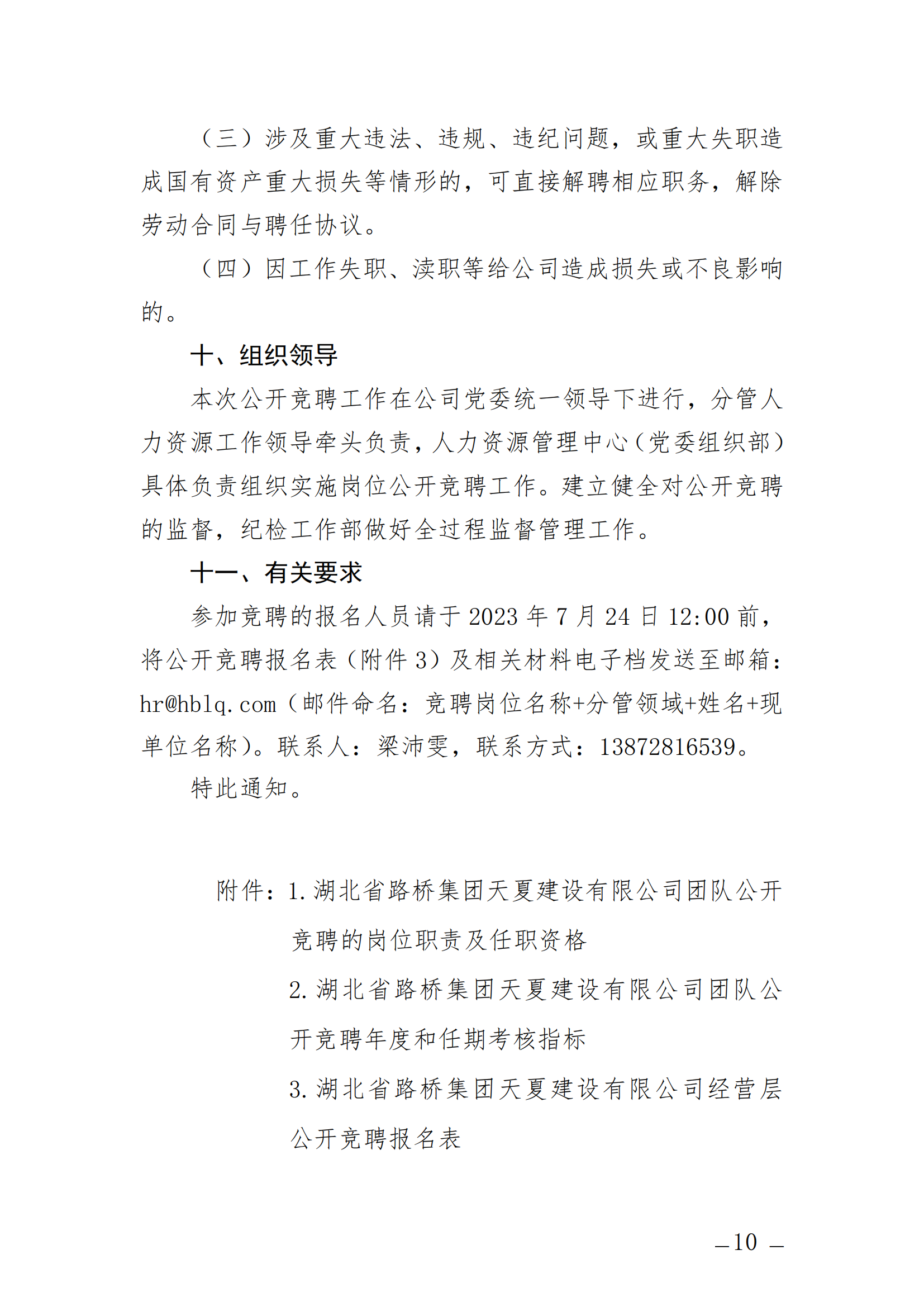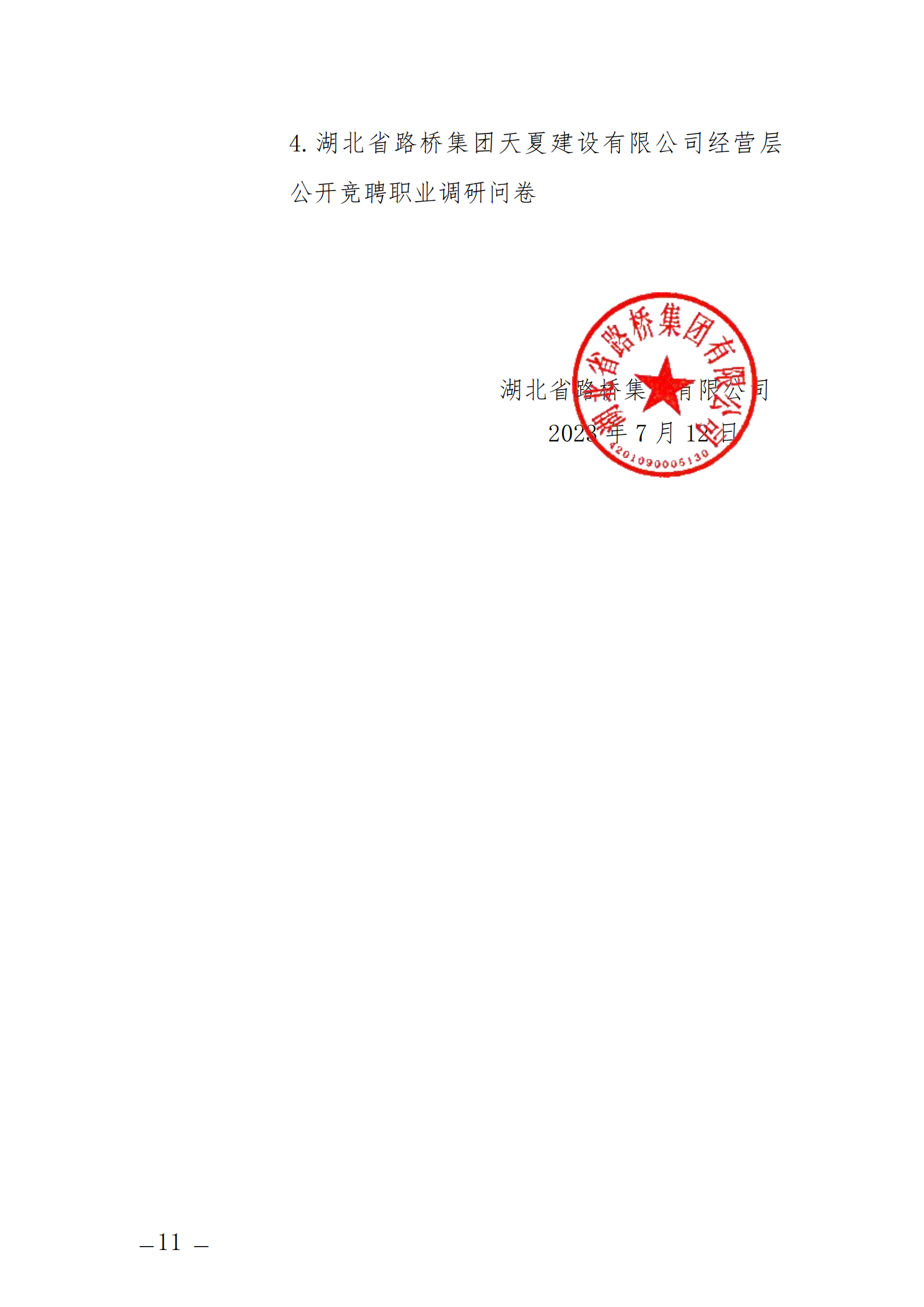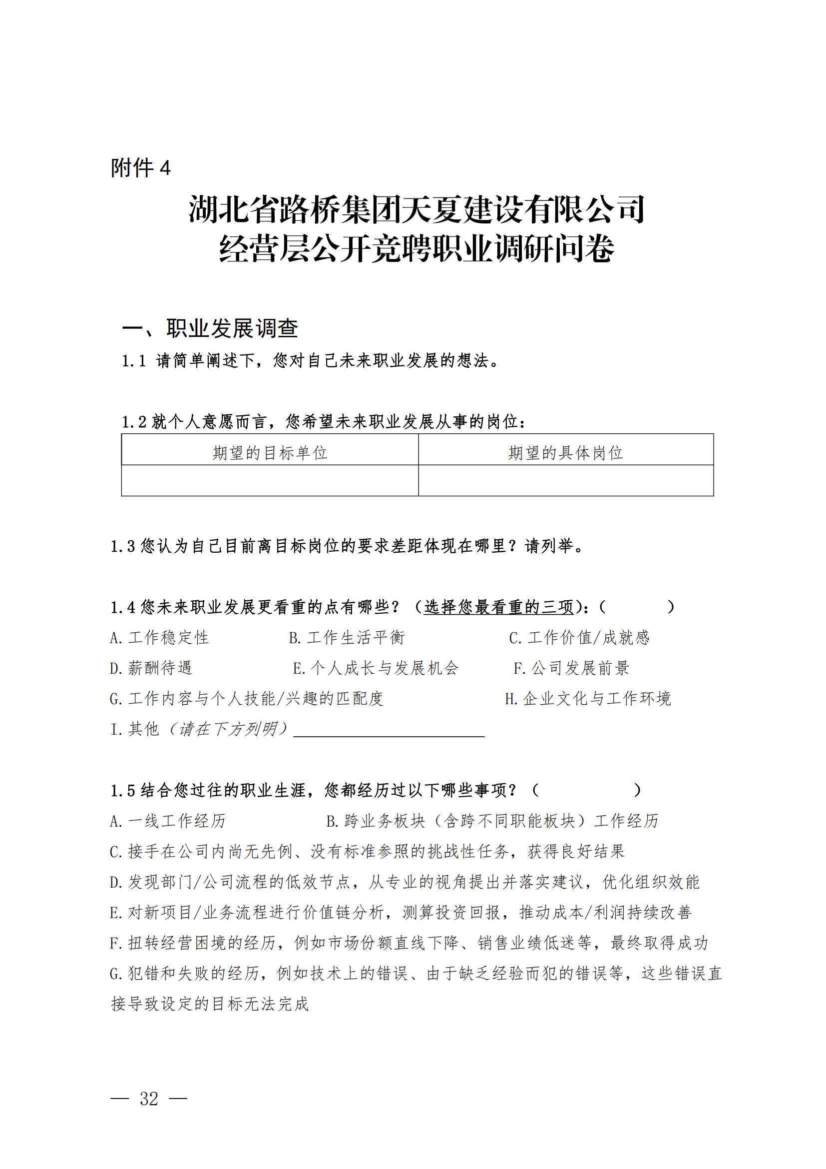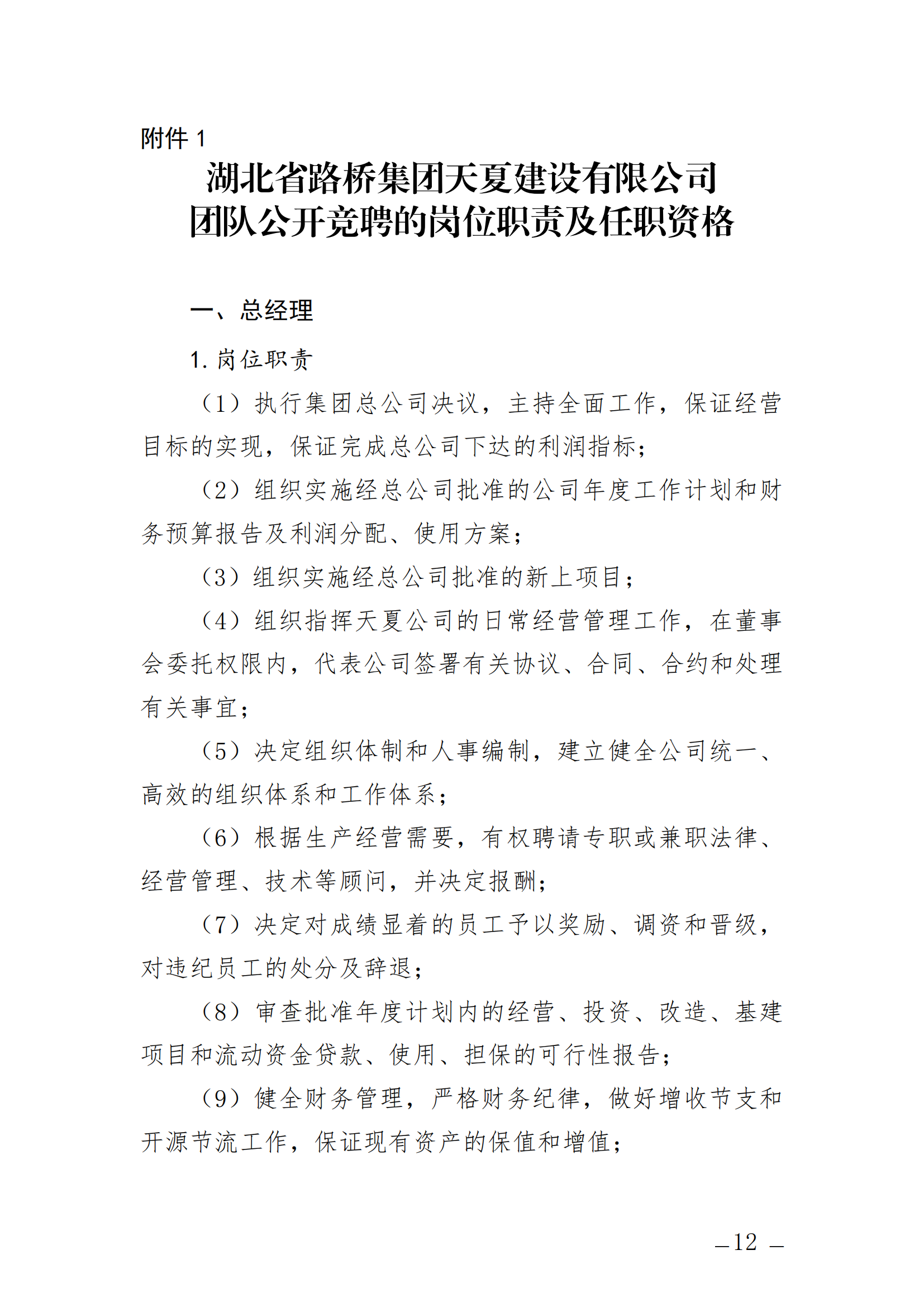 關(guān)于開展湖北省路橋集團天夏建設(shè)有限公司經(jīng)營層團隊公開競聘的通知