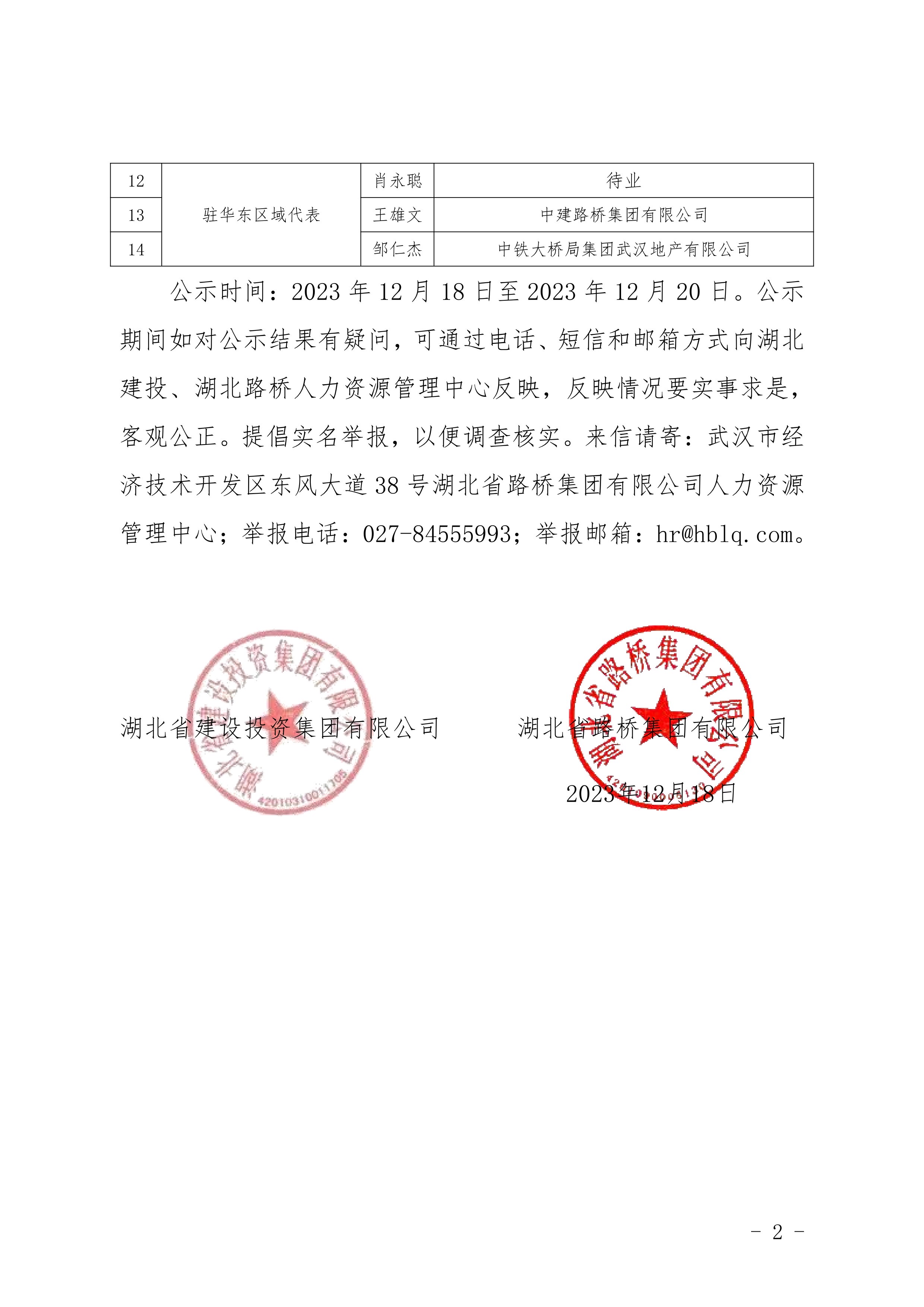 湖北省建設投資集團有限公司、湖北省路橋集團有限公司駐湖北聯(lián)投區(qū)域公司總部管理崗位公開競聘報名初審公示
