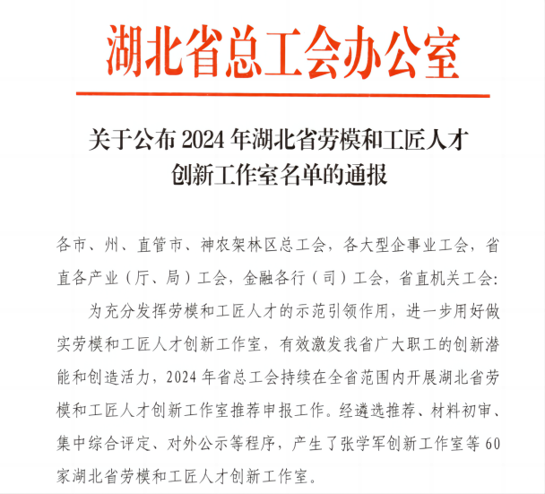 近日,湖北省總工會(huì)公布了2024年湖北省勞模和工匠人才創(chuàng)新工作室名單,湖北路橋“殷源創(chuàng)新工作室”光榮上榜。