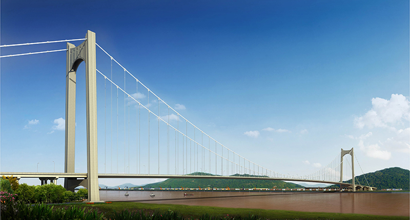 黃石棋盤洲長江公路大橋是武漢城市圈高速公路的重要組成部分,該項目起點位于陽新縣太子鎮(zhèn)樟樹灣村,順接擬建的黃咸高速公路大冶至陽新段,穿過規(guī)劃棋盤洲港區(qū)后跨越長江進入黃岡市蘄春縣境內(nèi),在韓家灣與G50滬渝高速全互通相交,終點接滬渝高速。路線全長22.237km,黃石側(cè)接線14.247km,長江大橋3.728km,黃岡側(cè)接線4.262km。本項目投資估算總金額為39.363億元,建設(shè)總工期為48個月。2014年10月,湖北路橋中標(biāo)棋盤洲長公路大橋建設(shè)工程項目,2020年6月5日,大橋?qū)崿F(xiàn)順利合龍。