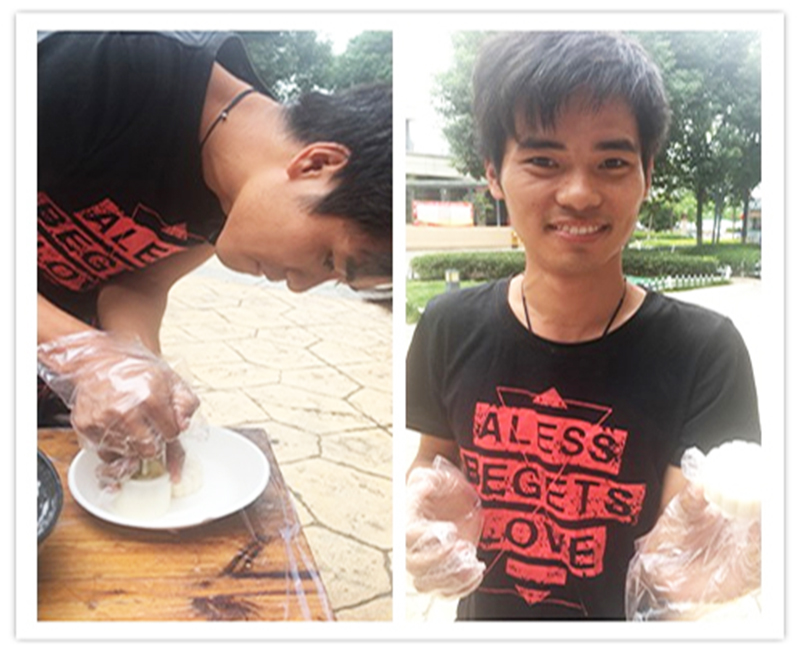 品嘗月餅也是中秋節(jié)的習俗之一,如果能品嘗自己親手制作的月餅,這個中秋節(jié)肯定更加難忘?;顒拥诙椌褪侵谱鞅ぴ嘛灒蠹乙贿呑约簞邮趾捅?、包餡、壓花定型,一邊相互交流著關于中秋和月餅的故事??此坪唵蔚闹谱鬟^程,要做出漂亮的月餅也讓大家費了不少心思。有些止不住饞的小伙伴,還沒等做完就迫不及待的嘗鮮了,也有些舍不得吃的,說要帶回家與家人分享。