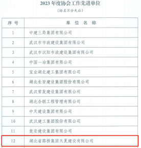 初心如磐守安全,砥礪奮進(jìn)譜新篇。近日,武漢建設(shè)安全協(xié)會就2023年建筑行業(yè)安全生產(chǎn)方面評選了一批先進(jìn)單位和先進(jìn)個人,湖北路橋天夏公司榮獲“2023年度協(xié)會工作先進(jìn)單位”稱號,天夏公司副總經(jīng)理殷玉華、安全總監(jiān)付建國榮獲“2023年度協(xié)會工作先進(jìn)個人”稱號。