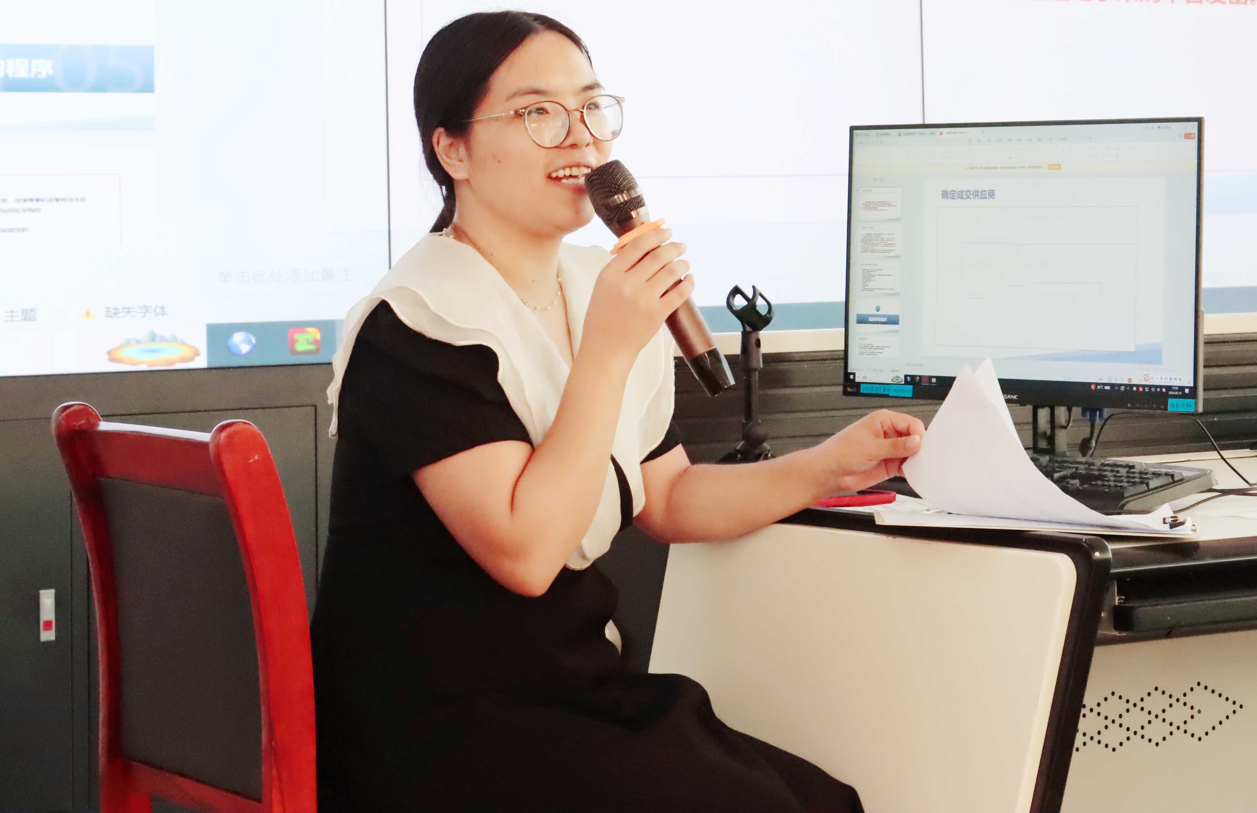 資產(chǎn)管理部副部長雷玲以《物資設(shè)備類非招標方式采購管理工作流程》為題,立足設(shè)備物資工作實際,系統(tǒng)講述了基礎(chǔ)業(yè)務(wù)、工作重難點、規(guī)章制度、風險管理等內(nèi)容,使參培人員增強了對制度的認知及理解。