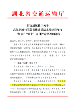 圖:湖北路橋項目獲省交通運輸廳通報表揚