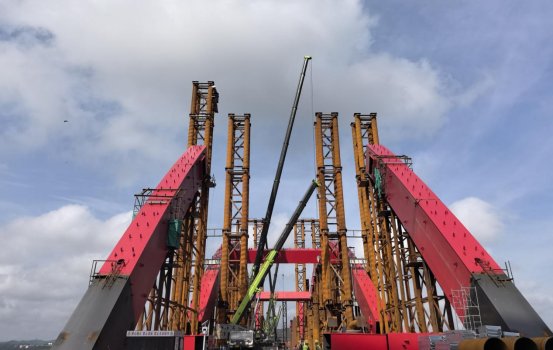 目前,水都二橋工程全橋下部結(jié)構(gòu)、引橋上部混凝土主體結(jié)構(gòu)和主橋主梁鋼結(jié)構(gòu)全部完成,正在進(jìn)行鋼拱肋拼裝、引橋附屬設(shè)施工作,項目計劃五月中旬前完成第三跨鋼拱肋提升工作,七月份左右完成全橋鋼拱肋安裝提升、主橋UHPC施工、附屬設(shè)施等工作。水都二橋建成后,將與水都大橋配合協(xié)調(diào)使用,對改善丹江口市交通環(huán)境,具有非常重要的意義。湖北路橋?qū)⒓哟筚Y源投入,合理組織、精心安排,爭取水都二橋工程早日建成通車。