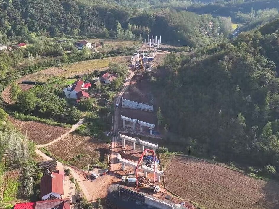 考箭壩大橋位于宜昌市遠安縣茅坪場鎮(zhèn)八角村,左幅長127.5m,右幅長127m,設(shè)計樁基26根,墩柱12根,蓋梁橋臺10個。在考箭壩大橋下構(gòu)施工過程中,襄宜三標項目強化計劃管理,緊扣節(jié)點目標,優(yōu)化、細化施工方案,統(tǒng)籌安排“人、機、料”等各項資源保障,嚴格把關(guān)原材料質(zhì)量、施工工藝等環(huán)節(jié),對技術(shù)方案、工藝流程、安全管理等方面進行詳細交底。此外,項目還充分發(fā)揮黨員攻堅崗、青年突擊崗、質(zhì)量通病突擊崗的作用,全程監(jiān)督、層層把關(guān)各個施工工序,確保工序管理規(guī)范化、施工作業(yè)標準化,為高質(zhì)高效完成橋梁下部結(jié)構(gòu)施工奠定了堅實基礎(chǔ)。