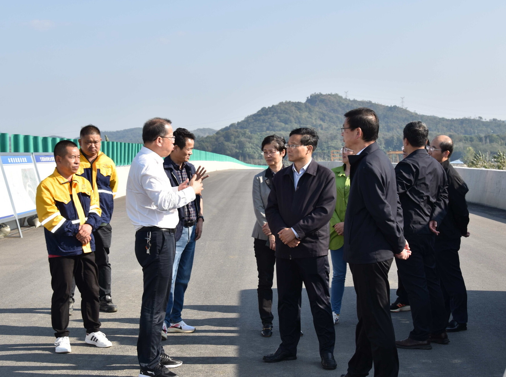 10月31日,黃岡市人大常委會(huì)黨組副書(shū)記、副主任屈凱軍一行實(shí)地調(diào)研G347巴蘄二標(biāo)蘭溪浠水河特大橋項(xiàng)目,浠水縣副縣長(zhǎng)夏清,浠水縣交通運(yùn)輸局黨委書(shū)記、局長(zhǎng)程旭,湖北路橋G347巴蘄二標(biāo)項(xiàng)目領(lǐng)導(dǎo)班子等陪同調(diào)研。