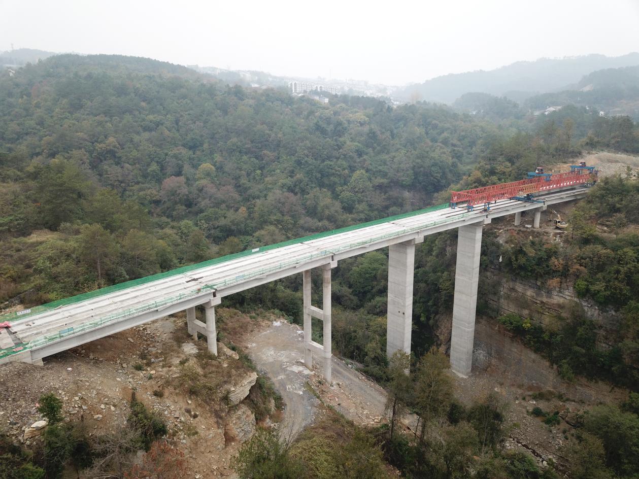 遠(yuǎn)安縣磷礦專用路項目位于宜昌市遠(yuǎn)安縣嫘祖鎮(zhèn)境內(nèi),標(biāo)段內(nèi)共計4座橋梁,總長664.32米,設(shè)計預(yù)制梁共109片。本次架設(shè)的庵溝2號大橋全長190.08米,上部結(jié)構(gòu)采用3×30+3×30m預(yù)應(yīng)力混凝土T梁,先簡支后連續(xù),全橋共2聯(lián),設(shè)計30mT梁30片,采用JQ180-40型架橋機(jī)進(jìn)行T梁架設(shè),其2#、3#墩身設(shè)計為薄壁空心墩,高度分別為49.6米和47.6米。